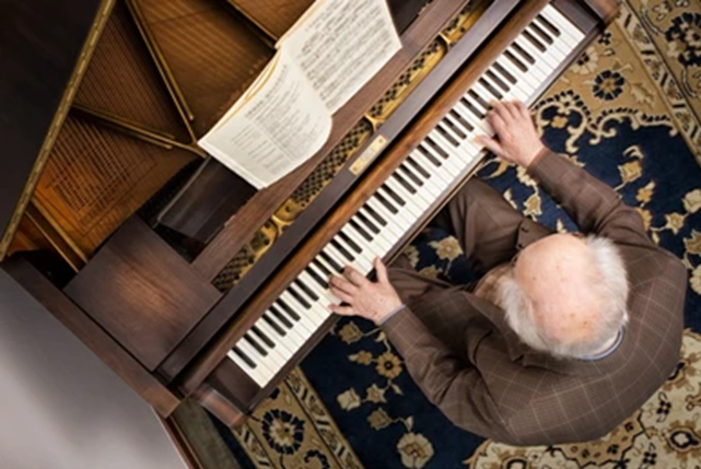 Toen braken de dagen aan dat hij steeds meer vergat. Zijn handen lagen dan verloren op zijn schoot. Zijn blik bleef hangen op de toetsen. Tot hij verslagen om zich heen keek. In het laatste stadium herkende hij zijn eigen vrouw niet meer. Alle herinneringen leken voor hem weggesijpeld te zijn.